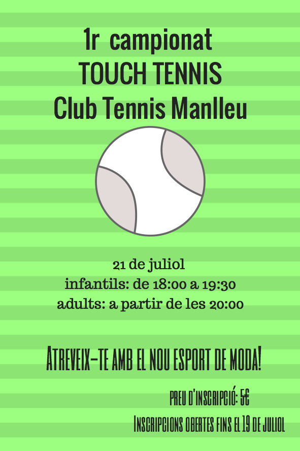 Vine a provar les noves instal·lacions de la pista poliesportiva del Club Tennis Manlleu amb aquest nou esport que s’està expandint arreu del món i que barreja el del tennis i el pàdel en un únic esport: el Touch Tennis. Com s’hi juga?