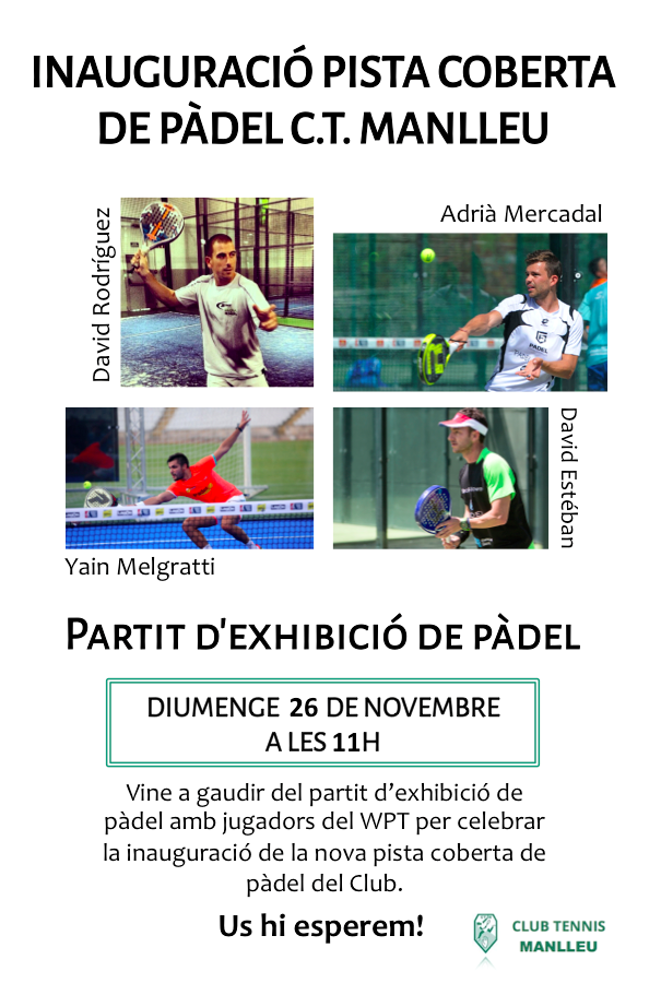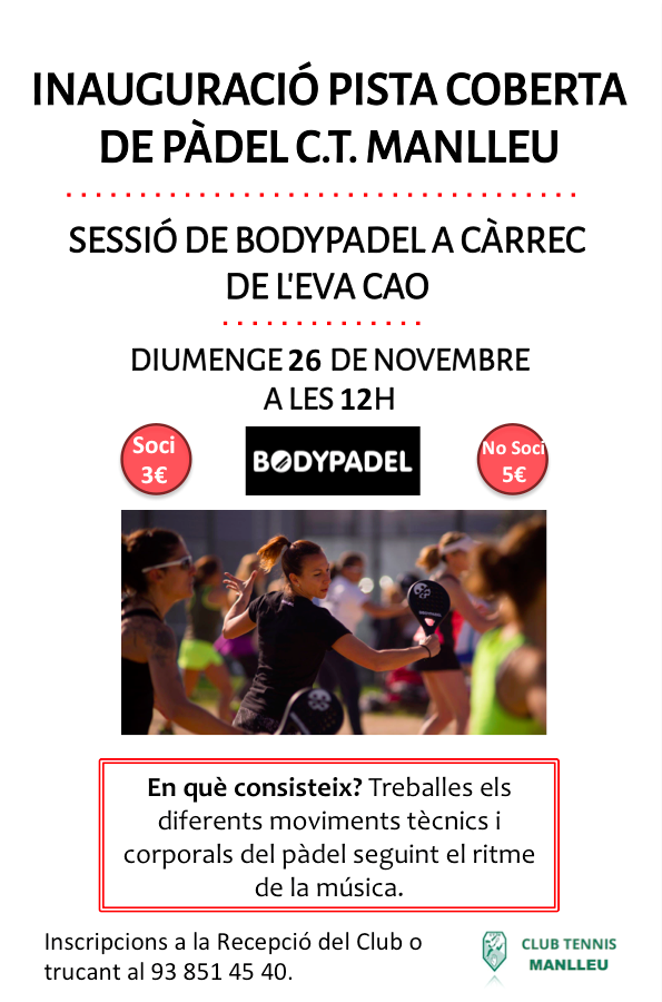 El diumenge 26 de novembre al matí, inaugurarem la nova pista de pàdel coberta del Cub. Per aquest motiu s’han organitzat dues activitats: